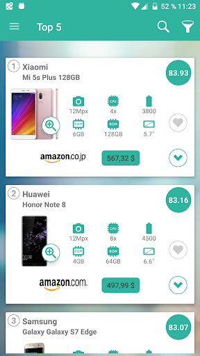 Behalten Sie mehrere Geräte gleichzeitig im Auge, vergleichen Sie technische Spezifikationen aller Art, finden Sie die besten Deals bei vielen Elektronikgeschäften wie amazon oder eBay, suchen Sie unter den vielen Gelegenheiten, die Ihnen das Internet bietet, nach Informationen für alle Marken wie Apple, Samsung oder Huawei, und kaufen Sie über den umfassendsten Onlineshopping-Assistenten, der Ihnen eine hervorragende Suchmaschine mit einer endlosen personalisierten Produktvielfalt zum besten Preis bietet.