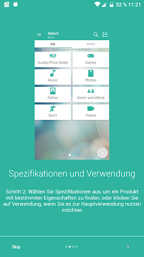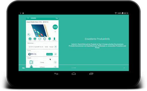 Suchen Sie nach einem bestimmten Smartphone-, Tablet- oder Smartwatch-Produkt, überprüfen und vergleichen Sie alle verfügbaren Preise (vom Shoppingassistenten nach Onlineshops, deren Angebot Sie kaufen können, geordnet), wählen Sie alle für Sie interessanten Spezifikationen aus und – nachdem Sie sich für ein Handy entschieden haben – tippen Sie darauf, um den Rest der Produkteigenschaften und -funktionen des jeweiligen Handys zu sehen oder nach dem Vergleichsprinzip die besten Preise, Rabatte und Verfügbarkeiten mit Direktergebnissen schnell und einfach zu finden.