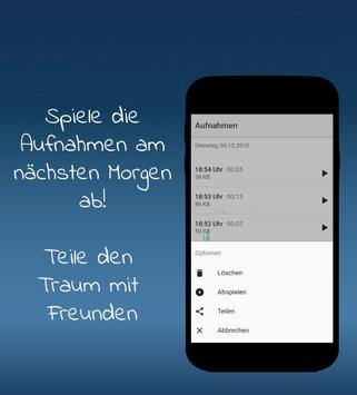 Du wolltest schon immer wissen, was du im Schlaf redest. Mit dieser App kannst du aufnehmen, was du im Traum sprichst. Sobald du anfängst im Schlaf zu reden, kann die App den Ton aufzeichnen. Am nächsten Morgen können die Aufnahmen wiedergegeben werden.