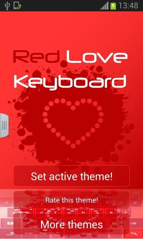 We are very happy to present our latest release: RED LOVE KEYBOARD! DOWNLOAD Red Love Keyboard NOW and make your smartphone display an inspiration for when you feel like chatting with someone you love! - To install, follow the 3 easy steps: open after download, press "Set as Active Theme" and select the theme from the following page! - The HD screenshots we added will make you see just how awesome this theme will look on your display! - This theme uses GO Keyboard, so if you do not have it installed, you will be redirected to a download page! - For your comfort, the menus for this theme come with 48 different language translations! If you enjoyed this theme, take the time to RATE and COMMENT after you install! Contact us at treicraiapps@gmail.com with any suggestions or questions you have and keep visiting to check out all our latest surprises! This theme uses a free font which can be found at http://www.dafont.com/neuropol.font