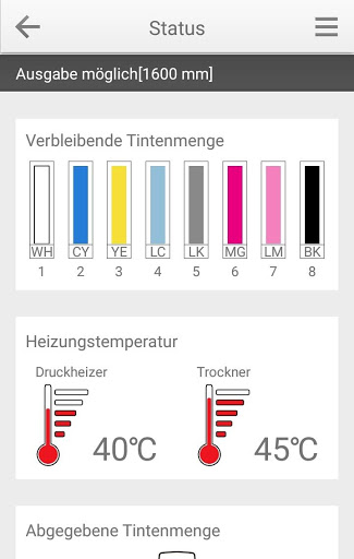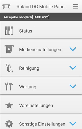 Neben einem integrierten Bedienfeld können Sie mit dem neuen Roland DG Mobile Panel mit Ihrem Smartphone oder -Tablet über eine Bluetooth-Verbindung Bedienfeldfunktionen des Druckers bzw. der Schneidevorrichtungen ausführen. Diese innovative neue Funktion bietet eine umfassende Benutzeroberfläche direkt an Ihrem Drucker oder für die Fernsteuerung in Reichweite Ihres Druckers. Sie können Statusaktualisierungen empfangen und Produktion, Testdrucke und Reinigungsfunktionen per Fernzugriff überwachen.