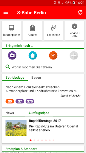 Die S-Bahn-App vereint eine komfortable Fahrplanauskunft für Berlin und Brandenburg (inkl. Echtzeitdaten, Fußwegrouting, Stadtplan) mit den wichtigsten S-Bahn-Informationen (Fahrplanänderungen, aktuelle Betriebsstörungen, Bahnhofsinfos) und eine Vielzahl von nützlichen Kontakt- oder Telefondaten für unterwegs (bis hin zur WC-Suche).
