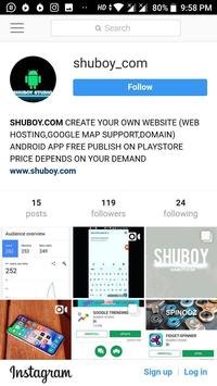 APP CREATED BY SHUBOY.COM.THIS APP ATTACHED YOU TO ALL ACCOUNTS OF SHUBOY LIKE YOUTUBE CHANNEL, FACEBOOK PAGE, INSTAGRAM ACCOUNT, TWITTER TRICKS, NEWS FEEDS, BLOGS, TECH NEWS AND MUCH MORE