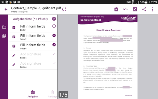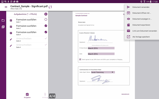 SIGNificant registriert sich als PDF-Anwendung auf Ihrem Gerät. Sie können somit PDF-Dokumente aus Emailanhängen aber auch aus Cloud-Speichern wie Dropbox oder Google Drive in die App laden und dort unterschreiben. Ebenso können Sie nach dem Unterschreiben die Dokumente wieder via Email weitersenden oder auf ihrem Gerät ablegen.