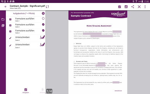 WICHTIG: Zum Vorbereiten bzw. Laden Ihrer Dokumente erfordert die Anwendung eine stabile Internetverbindung (Wifi oder 3G). Sobald die Dokumente in der App verfügbar sind, kann SIGNificant offline genutzt werden. Nach Fertigstellung eines Dokuments wird dieses im xyzmo-Rechenzentrum verarbeitet und digital signiert (Internetverbindung notwendig).
