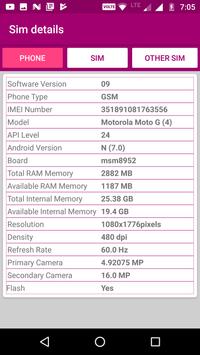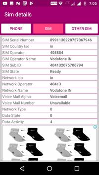 Your phone information like IMEI number,Phone Type,Version,API Level, Memory details and more will be available to you.