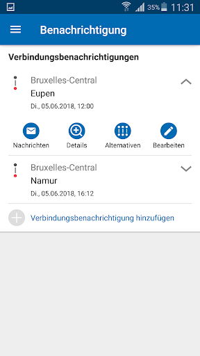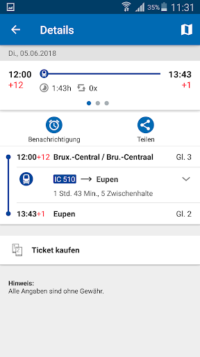 Mit der SNCB App können Sie Fahrkarten kaufen, alle Informationen zu ihrer Reise im Kalender speichern und/oder sie mit anderen per E-Mail, SMS oder Twitter teilen.