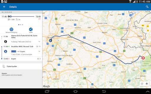Die SNCB App bietet einen vollständigen Überblick über alle öffentlichen Verkehrsmittel in Belgien. Der multimodale Reiseplaner berechnet die schnellste Verbindung von Tür-zu-Tür, optional auch per GPS. Des Weiteren sind Abfahrtszeiten von Bussen, U-Bahnen und Zügen verfügbar, Zuginformationen dabei auch in Echtzeit. Sie können in Echtzeit nach Bahnhof die Abfahrts- und Ankunftszeiten abfragen oder auch eine Suche nach Zugnummer vornehmen. Außerdem können Sie Störungen auf dem Schienennetz abfragen und bei Zugverspätungen automatisch benachrichtigt werden.