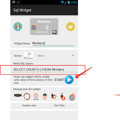 SQL-Widget ist eine einfache und schnelle Anwendung, um Daten von jedem DBMS im Telefon-Widget anzuzeigen.