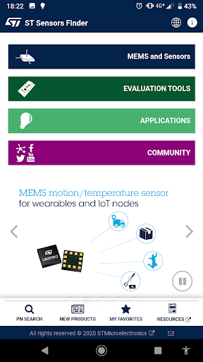 ST Sensors Finder App ist der schnelle und intelligente Weg, um unsere MEMS- und Sensoren-Portfolio, Evaluation-Tools und -anwendungen mit Ihrem Smartphone oder Tablet zu erkunden.