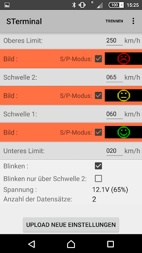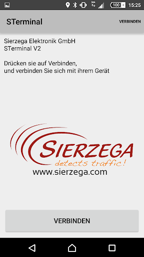 Die Anwendung ist selbsterklärend aufgebaut. Nach dem Verbindungsaufbau über Bluetooth kann mit wenigen Arbeitsschritten ein Sierzega Produkt konfiguriert werden oder es können Verkehrdaten runtergeladen werden.