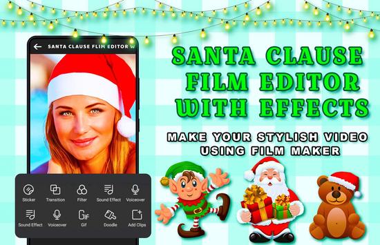 Santa Claus Film Editor With Effects app for creating Videos,Slideshows & Stories With Your Photos,Videos & Music.Several Steps Selecting Photos,Adding Filters,Text & Music,Instantly Finish Your Own film videos.