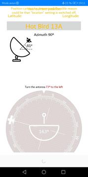 SatFinder (Satellite Finder) Geo area calculator and Level meter is a tool which will help you to set up satellite dish. It will give you azimuth, elevation and area calculation for your location (based on GPS) and chosen satellite from list. The result is shown both as numeric data and graphical on google maps. It has also built in magnetic compass which will help you to find proper satellite azimuth.