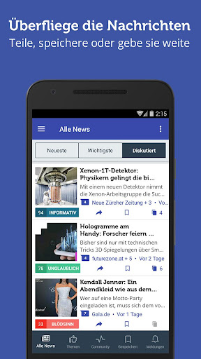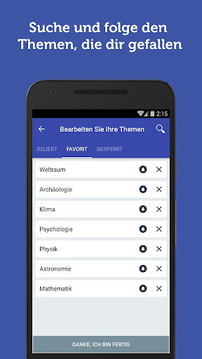 - Dein eigener Nachrichten-Feed - Wähle die Themen aus, denen du folgen willst und/oder die Themen, die du sperren willst! Belaste dich nicht mit Nachrichten, die dich nicht interessieren! Quellen, die dir nicht gefallen, kannst du sogar sperren! (Länger auf einen beliebigen Artikel drücken)