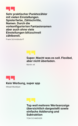 Ich 💜 Brettspiele und schätze Dein Feedback. Ich benutze diese Anwendung regelmäßig für Carcassonne, Star Realms, Scrubble oder sogar UNO :)