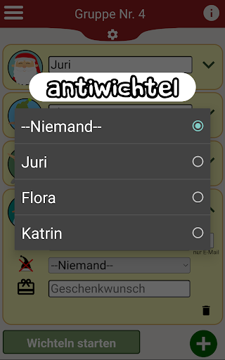 Weißt du einem Wichtel einen Antiwichtel zu wird er diesen nicht bei der Verlosung ziehen. (praktisch für Pärchen oder auch den Wichtel des Vorjahres)