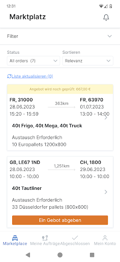 Die sennder-App bietet Spediteuren Tools, mit denen sie ganz einfach nach Sendungen suchen, Angebote abgeben und diese annehmen, Details zu Ladungen und Stopps einsehen und Papierkram verwalten können.
