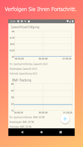Mit BMI, IMG und Gewichtsüberwachung können Sie täglich Ihren Fortschritt in Richtung Ihres Gesundheitsziels überwachen.