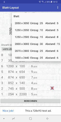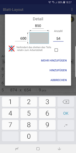 Die Anwendung zahltdie Anzahl der Materialblätter, die für die Herstellung einer bestimmten
