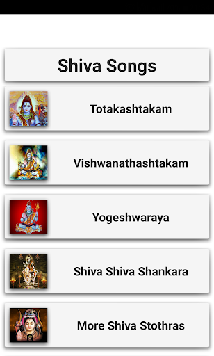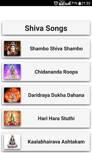 Die App enthält die folgenden Shiva-Songs