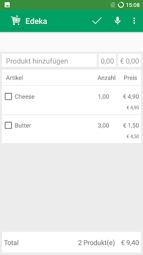 Ab jetzt brauchst du keinen Einkaufszettel mehr und kannst bequem einkaufen.. Unsere Einkaufsliste ist mit Preisangabe sowie mit Spracheingabe. Du kannst den Produktnamen, Anzahl und Preis via Spracheingabe eingeben und dann alle erledigten Produkte abhacken.