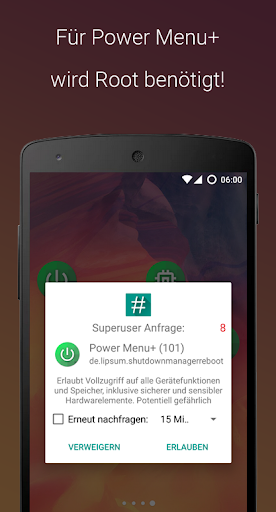 Um die App benutzen zu können sind Rootrechte auf deinem Telefon erforderlich.