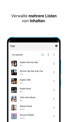 Füge deine Lieblingsinhalte von Spotify zu Sign hinzu und organisiere diese in Listen.