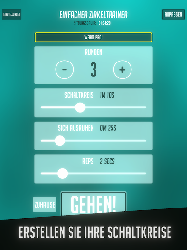 🧭 Stellen Sie die Anzahl der Sätze ein und wiederholen Sie die Intervall-Timer für Schaltkreise und Ruhezeiten