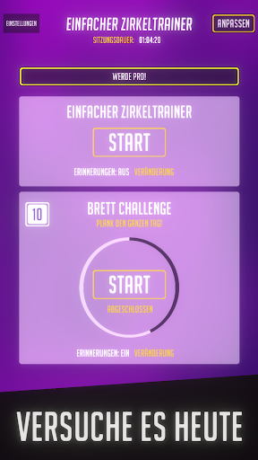 PLANK CHALLENGES APP eine Pause von der Arbeit und trainieren Sie von zu Hause aus