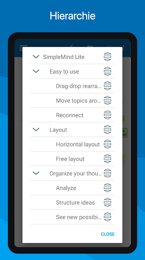 SimpleMind ist für beides, Telefone und Tablets optimiert. Einige Funktionen sind nur in neueren Android-Versionen verfügbar.