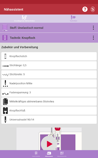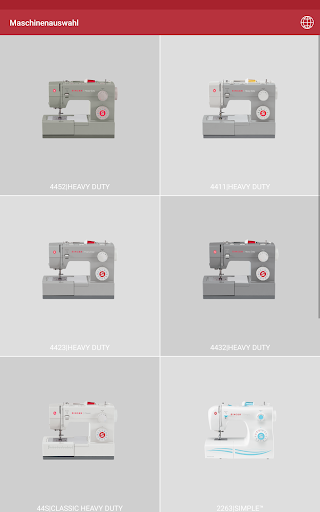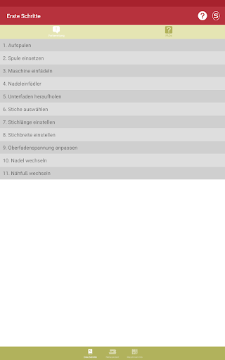 In diesem Abschnitt der App erhalten Sie Informationen, um sich mit Ihrer SINGER® Nähmaschine* vertraut zu machen und Sie erfahren mehr über: