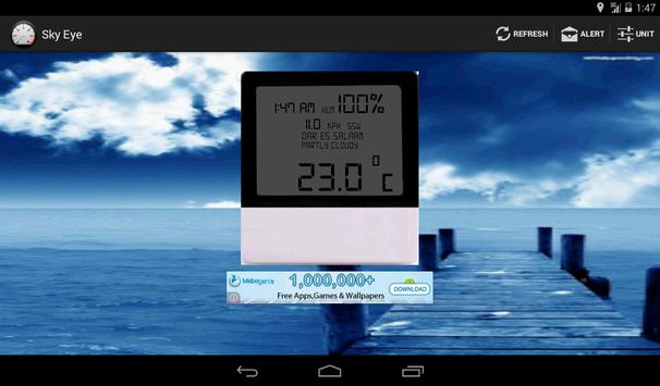 Sky Eye is a very simple weather app that uses enabled device GPS to detect your location and update your current weather conditions.It will alert you for any critical upcoming conditions as well.