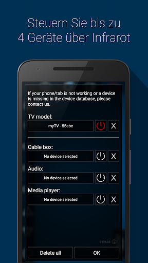 ★Eine auf die App abgestimmte Datenbank mit IR codes. Sollte Ihr Gerät nicht dabei sein, kontaktieren Sie uns einfach und wir werden versuchen dies hinzuzufügen.