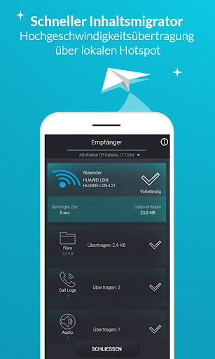 Inhaltsübertragungs-App - Übertragung großer Dateien