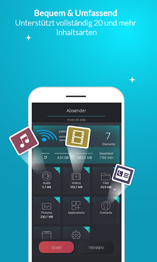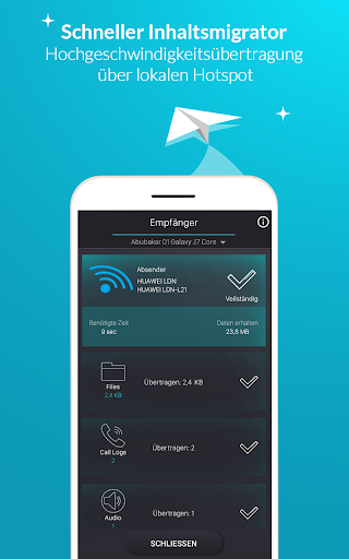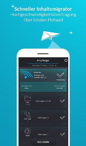 Mit dieser außergewöhnlichen mobilen Übertragungs-App können Sie Daten von Android zu Android, iOS zu Android, Android zu iPhone übertragen. Sie unterstützt Android 4.0 bis zur neuesten Version und alle iOS-Telefone.