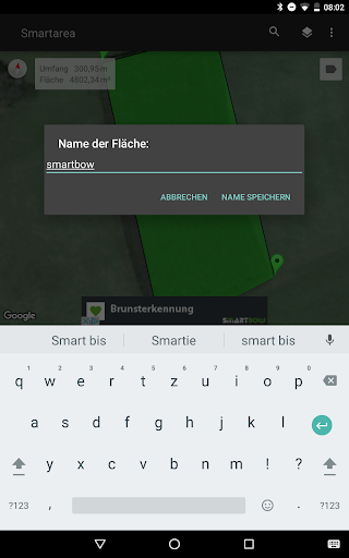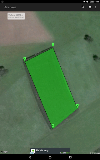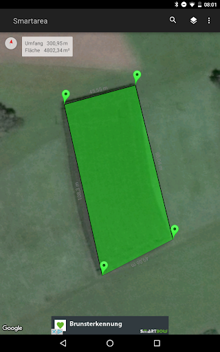 Smartarea verwendet für die Berechnungen das GPS Ihres Handys, direkt nach der Installation können Sie z.B. Ihr Grundstück vermessen
