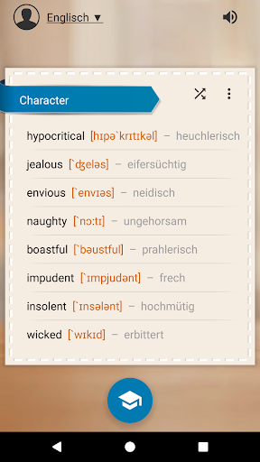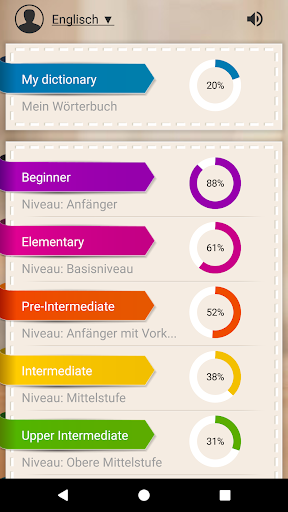 ★ Verwenden Sie die eingefügten Funktionen, um Ihr eigenes Wörterbuch zu bilden und Wörter nach Themen und Niveau entsprechend zu organisieren.