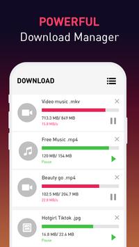 HD video downloader app auto detects videos, you only need to click the download button. Pause, resume, or remove downloads as you like. It also supports multiple downloads and background download.