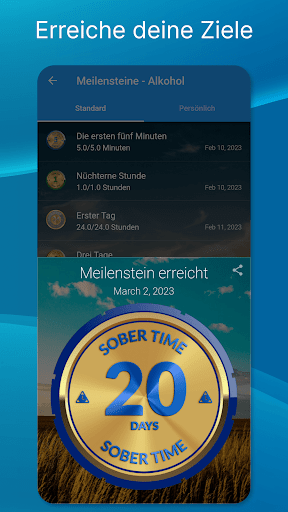 ✔ Benachrichtigung, wenn du ein Abstinenzziel erreicht hast