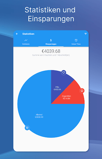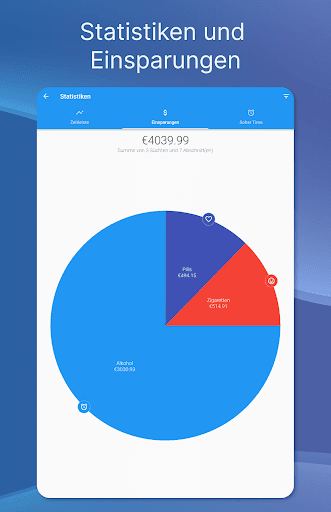 ✔ Verfolge Statistiken, Ausgabegewohnheiten und Ersparnisse der Sucht, die du aufgeben willst