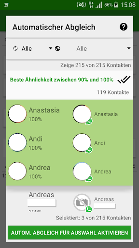 Die App gleicht Telefon-Kontaktbilder mit Kontaktbildern aus sozialen Netzen ab. Man kann dabei auch ein paar Einstellungen auswählen: