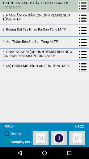 Listen Son Tung MTP all mp3 songs offline. Play, pause and next button on lock screen.