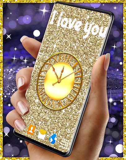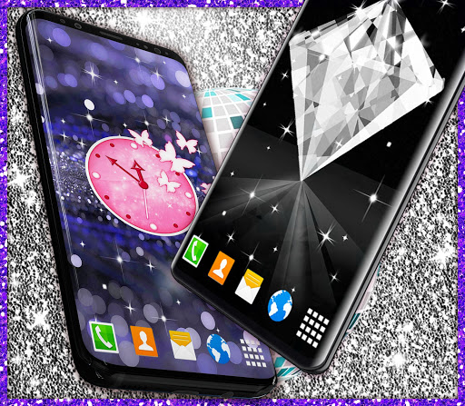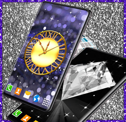 hat mehrere bewegende Tapeten mit neon lila und glitter Glühenbilder, glänzende Diamanthintergründe, Gold- und Silber-HD-Tapete, mehrere Anpassungsoptionen wie Hintergrundwechsler, Frames, animierte funkelnde Sterne, Magic Touch, analoge Uhr, Emoji, Ihr Name und mehr, das funktioniert auf dem Sperrbildschirm und sie sind alle