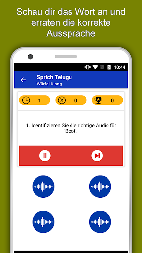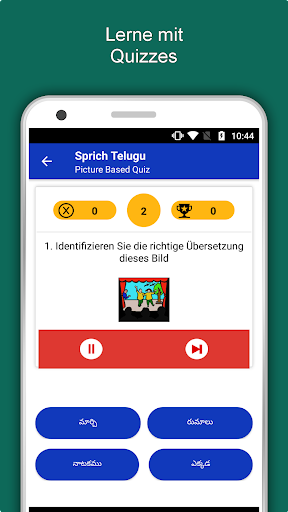 Die Offline-Telugu-Lern-App hat 2135 Wörter mit 55 Kategorien. Es enthält Aussprache, Bilder und Phonetik von Wörtern für einfaches Lernen. Schalten Sie die Grundsprache, sparen Sie Lernen in EduBank℠, Audio-Play, Potpourri und Retention-Spiele sind die Hauptmerkmale von Sprechen Telugu App.