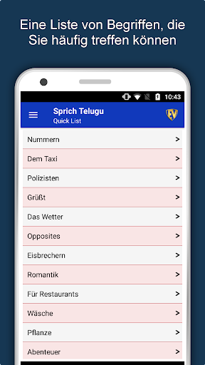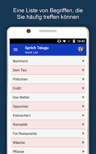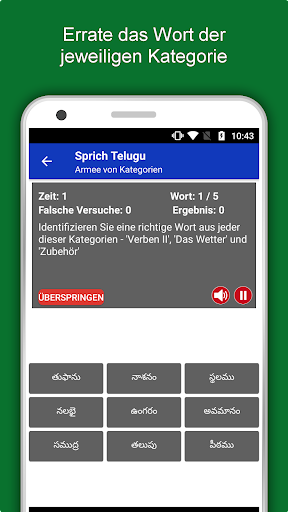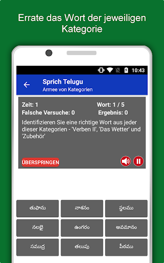 Es wird Ihnen helfen, Vokabeln zu erhöhen und sich in Telugu zu unterhalten. Jetzt herunterladen!