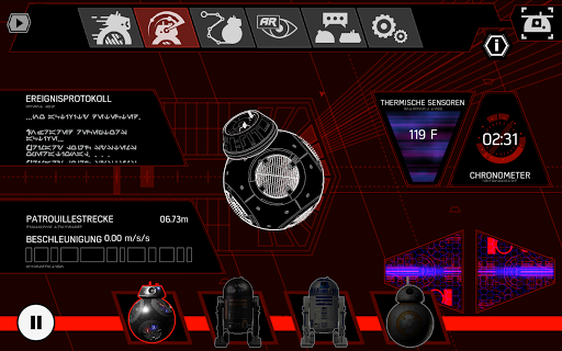 Jeder Droide hat eigene Umgebungen, die er erkunden kann. BB-8 fährt den Raddus, einen Kreuzer des Widerstands, BB-9E führt Dich durch dir Supremacy, einen Sternenzerstörer der Ersten Ordnung, R2-D2 kann den Millennium Falken, und R2-Q5 erforscht den Zweiten Todesstern.