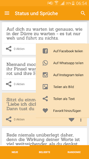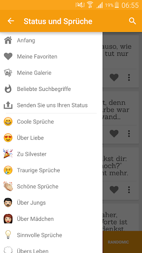 Mit der App "Status und Sprüche" finden Sie in der Hand Tausende von Phrasen und Reflexionen, die Ihr Herz berühren wird.