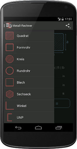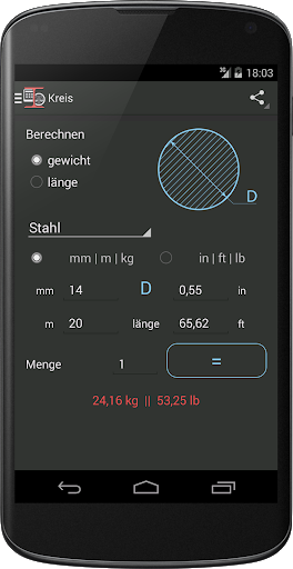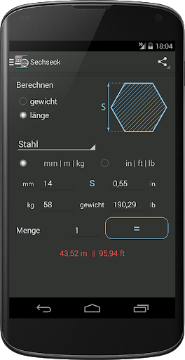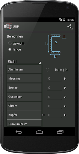 Diese app wird Ihnen helfen, zu berechnen, Gewicht oder Länge des ausgewählten Metall in verschiedenen Formen. Mit diesem Rechner können Sie die Länge und bekommen das Gewicht des Metalls, und Umgekehrt.