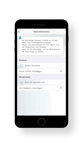 - finden Sie Vorteile des Rauchstopps heraus, personalisieren Sie Ihre eigenen Motivationen.