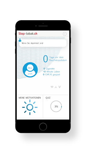- erstellen Sie ein Rauchstoppdatum und erhalten Sie regelmässig Nachrichten je nach Ihrem Profil.